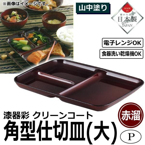 撥水性が高く汚れがつきにくいクリーンコート加工の角型仕切皿です。 製造国:日本 素材・材質:飽和ポリエステル樹脂・ABS樹脂ウレタン塗装 商品サイズ:約幅260×奥行190×高さ25mm 仕様:電子レンジ使用可食器洗い乾燥機使用可 ※サプライヤー直送品 ご注文後2~3営業日後の出荷となります【商品名】パール金属 漆器彩 クリーンコート 角型仕切皿大 赤溜 K-6133