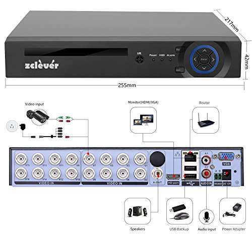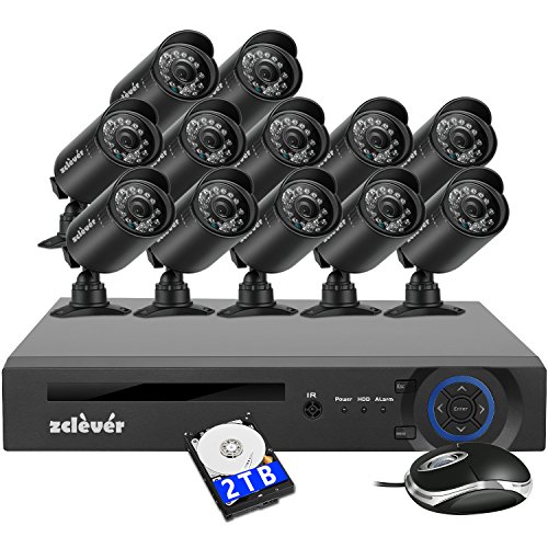 -. Feature : Zclever 720P home surveillance system includ 1pcs 16ch HD DVR,12pcs 720p cctv cameras,12pcs 60ft cable,4pcs power supply and 3pcs 1-4 splitter,easy installation with the manual,2tb hard drive included support 10days full-time recording / Zclever 16CH AHD DVR Support connect with 720p/960p/1080p AHD cameras,we match 12pcs camera for this security kits,it recording all channels and playback 16ch at one time,the recording resolution is 720p,HDMI &VGA output is optional / 12pcs seucity camera with Good night vision and crystal clear day time video,The metal casing support outdoor use and make you feel more secure / Zclever 16ch video camera system support motion detection recording and remote view,if you travel a lot,you can log in to the website or app to check your house anytime anywhere any question of the setting,please contact us directly / we offer 1 years warranty and lifetime technial support,replacement will arrange if the DVR or camera stop working within one year