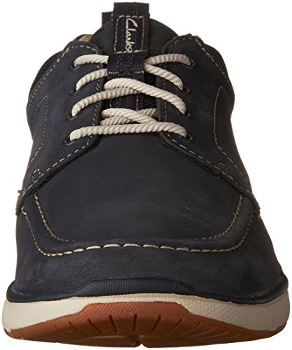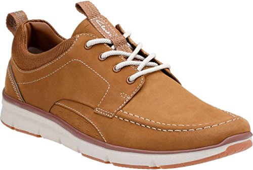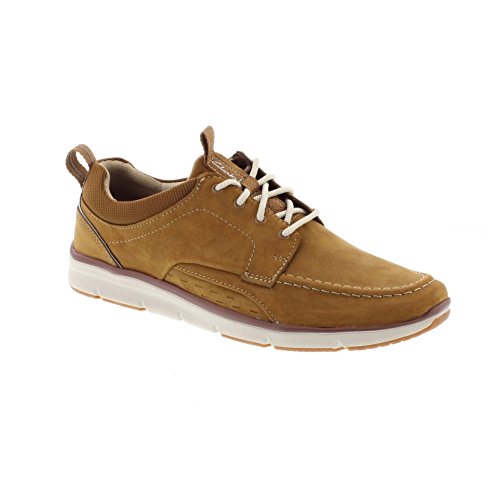 Product Description Men's Clarks, Orson Bay Lace up Shoes The ideal shoes for boating enthusiasts! Leather and fabric upper Lace up closure for a secure fit Fabric lining Cushioned footbed for added comfort Rock rubber outsole for added traction with the Aqua DX drainage system 0