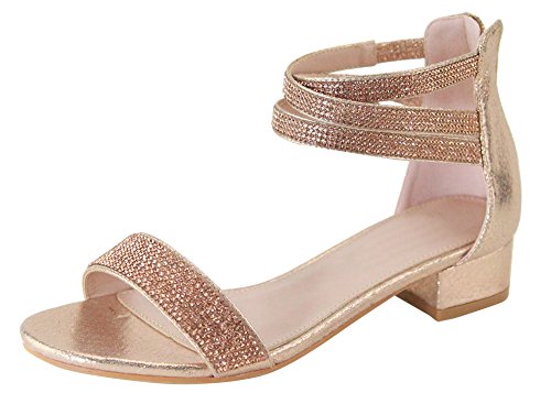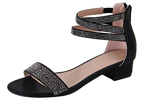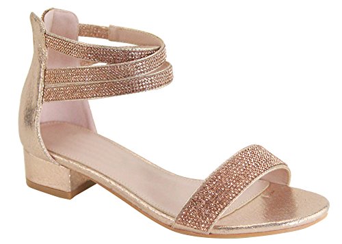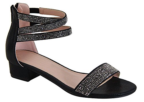 Product Description This heeled sandal from Cambridge Select features a single vamp band, stretch crossover ankle straps, allover crystal detailing, and a low, block heel. Imported. 0