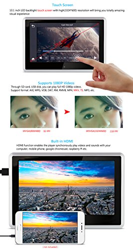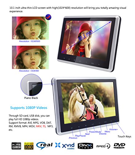 -. Binding : Electronics -. Brand : DDAUTO -. Color : black -. Feature : A striking ultra-thin design with sleek touch button bring together elegance and functionality in perfect harmony. / 10.1' screen HD 1080P and Hitachi lens inserted offer a superior wide and clear visual senses and will give you sharper figures and graphic. / Build-in HDMI port supports one easy connection between the player and your mobile phone then you could share games or videos through the big screen. / Easy to install and remove, this unit could apply to in-car use as a headrest DVD player but also home use as a portable DVD player. / A car headrest DVD player provides entertainment, fan and joy while making a long or short trip. You can enjoy movies, listen to music and even play games without taking up extra space. -. Label : IDDAUTO -. Manufacturer : IDDAUTO -. ManufacturerPartsWarrantyDescription : Parts -. PackageQuantity : 1 -. ProductGroup : Car Audio or Theater -. ProductTypeName : CAR_AUDIO_OR_THEATER -. Publisher : IDDAUTO -. Studio : IDDAUTO -. Title : DDAUTO 10.1' Headrest DVD Player HD Digital TFT Screen 1080P Touch Button Monitor Multimedia Choices Support with HDMI Port, USB and SD card with Remote Control and Wall Adapter (DD101HD)