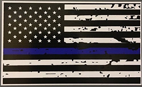 -. Title : NI424 **2-Pack** Thin Blue Line Tattered Flag Decal Sticker | 5-Inch By 3-Inch | Premium Quality P.R.Inted Vinyl Sticker