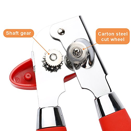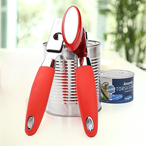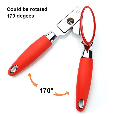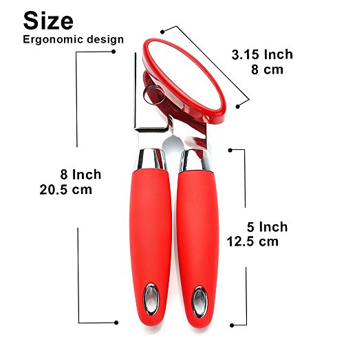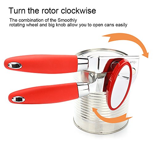 Stainless Steel Manual Can Opener-Professional Heavy Duty Ergonomic Anti-Slip Soft Grips Handle.Big Knob For Easy Turn Open Cans And Tins With No Effort.Safety Smooth Edge No Sharp Cuts(red)