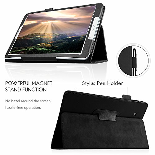 FanTEK Samsung Galaxy Tab E 9.6 / Nook SM-T560 T561 T565 T567V (Verizon 4G LTE Version) 9.6 Inch Tablet Case - PU Leather Multi-Angle Stand Magnetic Cover (Black)