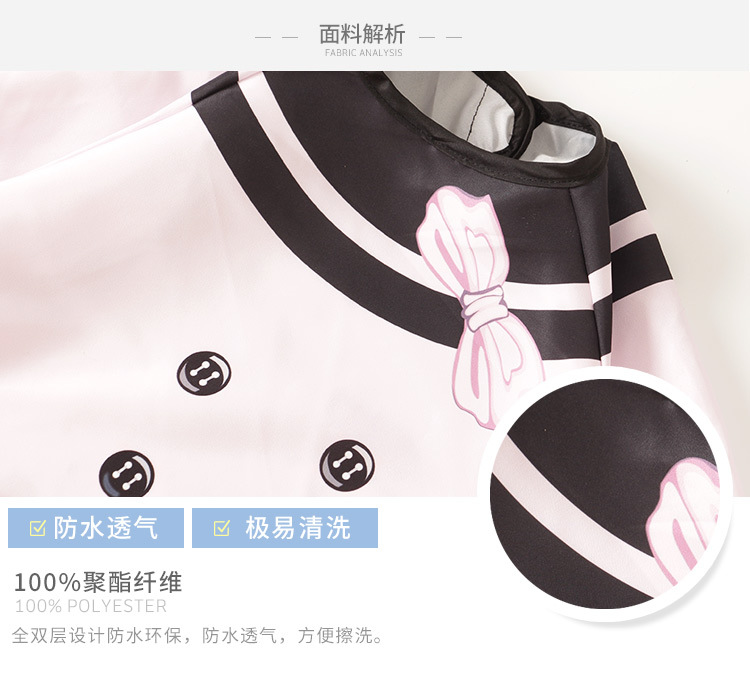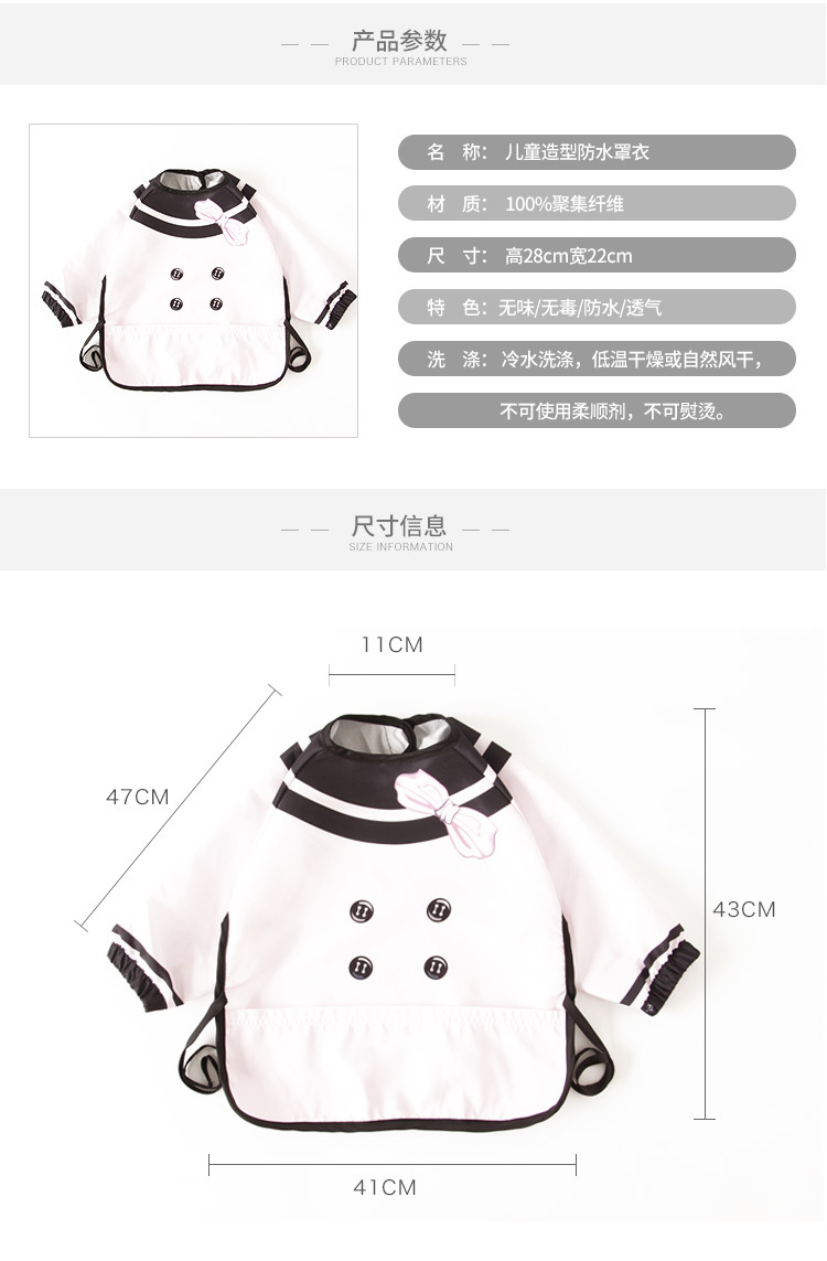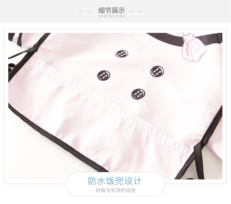 再多的油渍和菜汤滴上u0026nbsp;清洗起来也很方便不会有油印的哦!下面还有饭兜,u0026nbsp;宝宝吃饭洒下的饭粒u0026nbsp;不会弄得满地是!