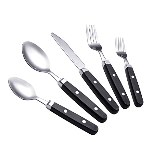 Moxinox 20-Piece Flatware Set Black Plastic Handle Stainless Steel Silverware Tableware Dinnerware Service for 4