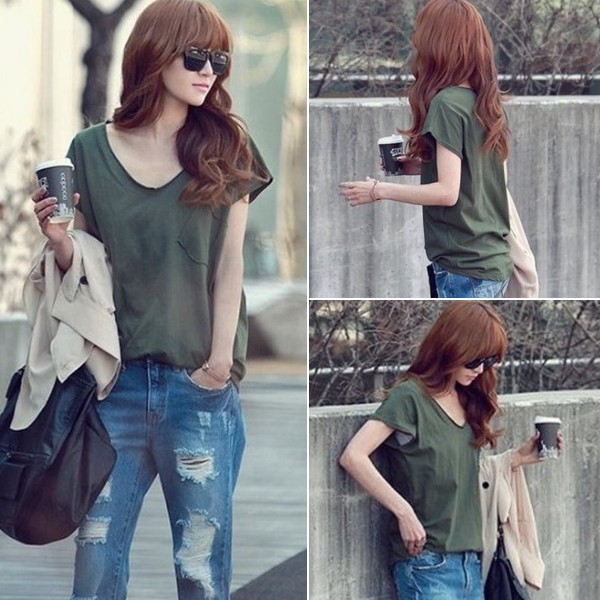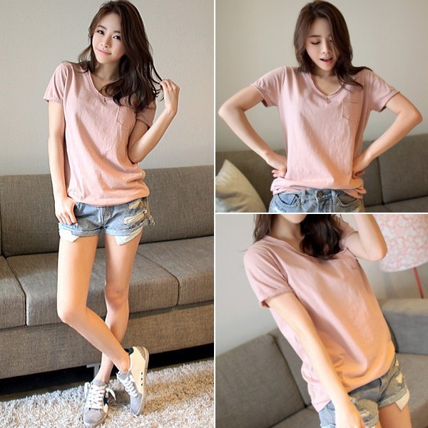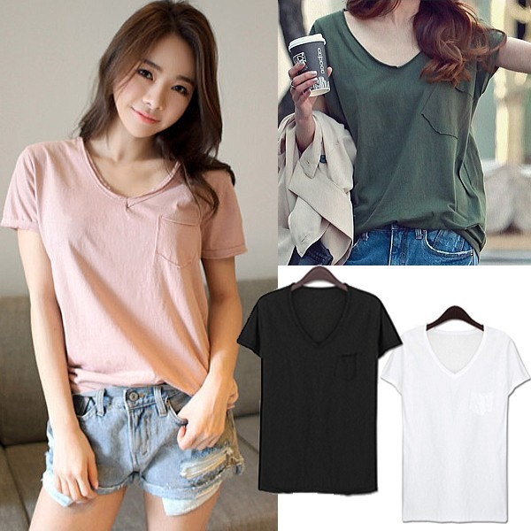 | 商品名 | Vネック 半袖 無地 胸ポケット付き Tシャツカットソー |