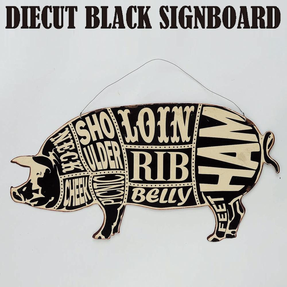 お部屋のインテリアにはもちろん、レストランやカフェなどでも活躍するデザインです。 製造国:中国 素材・材質:ブリキ 商品サイズ:W54.5×D0.1×H26.5cm ※サプライヤー直送品 ご注文後5~6営業日後の出荷となります【商品名】キーストーン ダイカットブラックサイン ポーク DIBKSIPO