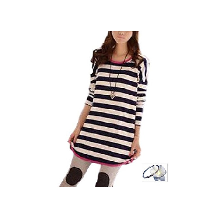 Wild Magnolia 레이디스 보더 긴 소매 T 셔츠 컷소우 마타니티 튜닉 스트라이프 핑크 (01 M 사이즈)