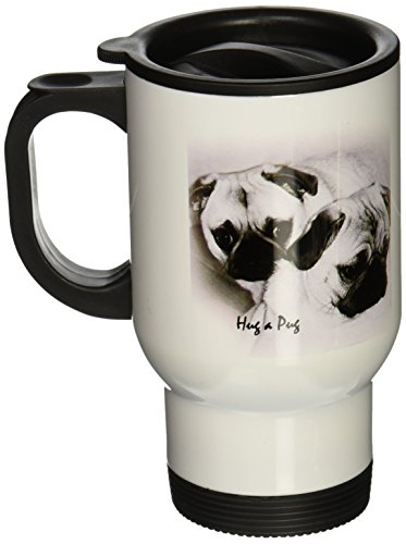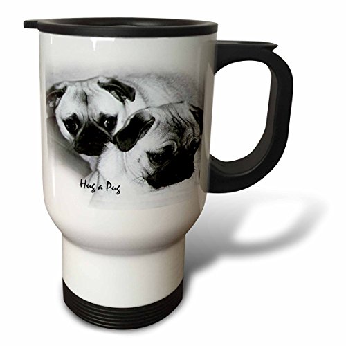 3dRose Hug a Pug Puppies Travel Mug, 14-Ounce, Stainless Steel