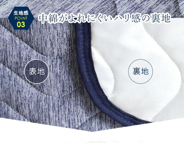 ●表地:ポリエステル100% 160g/m2(ナイロン+ポリエステル)、中綿:ポリエステル100% 120g/m2、裏地:ポリエステル100%、中綿吹き出し防止不織布入り