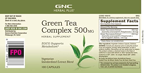 -. Binding : Health and Beauty -. Brand : GNC -. Feature : Egcg Supports Metabolism / For More Information About Whole Herbs Vs. Extracts, -. ProductGroup : Health and Beauty -. ProductTypeName : HEALTH_PERSONAL_CARE -. Title : GNC Herbal Plus Green Tea Complex 500 mg 200 Vegetarian caps