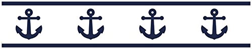 Sweet Jojo Designs Anchors Away Nautical Navy Blue and White Childrens and Kids Modern Wall Paper Border
