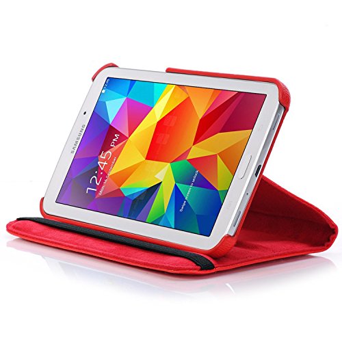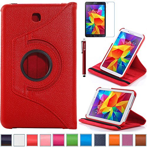 AiSMei Tab 4 8.0 Case, Rotating Stand Case For Samsung Galaxy Tab 4 8.0 SM-T330NU SM-T331, SM-T337 8-Inch Tablet PC, 8inch PU Leather Case + Bonus Stylus + Screen Protector - Red