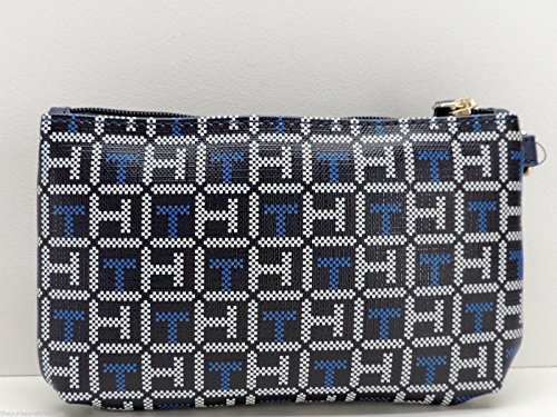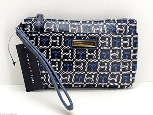 Tommy Hilfiger Wristlet Blue White Logo Top Zip Clutch