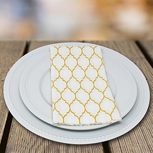 Echo Beach Cloth Like Guest Towels offer a stylish way to brighten up your dining room, bathroom or kitchen. A great hostess gift, these chic disposable hand towels feature a traditional Moroccan design in classing gold. Set out these guest towels in your office, home, kitchen or bath to impress visitors with your eye for design.