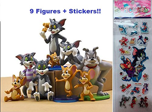 -. Feature : Tom and Jerry 9 Piece Play Set with 9 Tom, Jerry, and Spike Figures with Figures Ranging from / Free Tom and Jerry Stickers Included / PVC Material. Packed in a Poly Plastic Bag / .5" to 2.5" Tall / Great as Cake Toppers or Cake Decorations, Christmas Gifts, Birthdays. Kids love them!