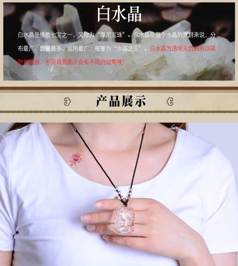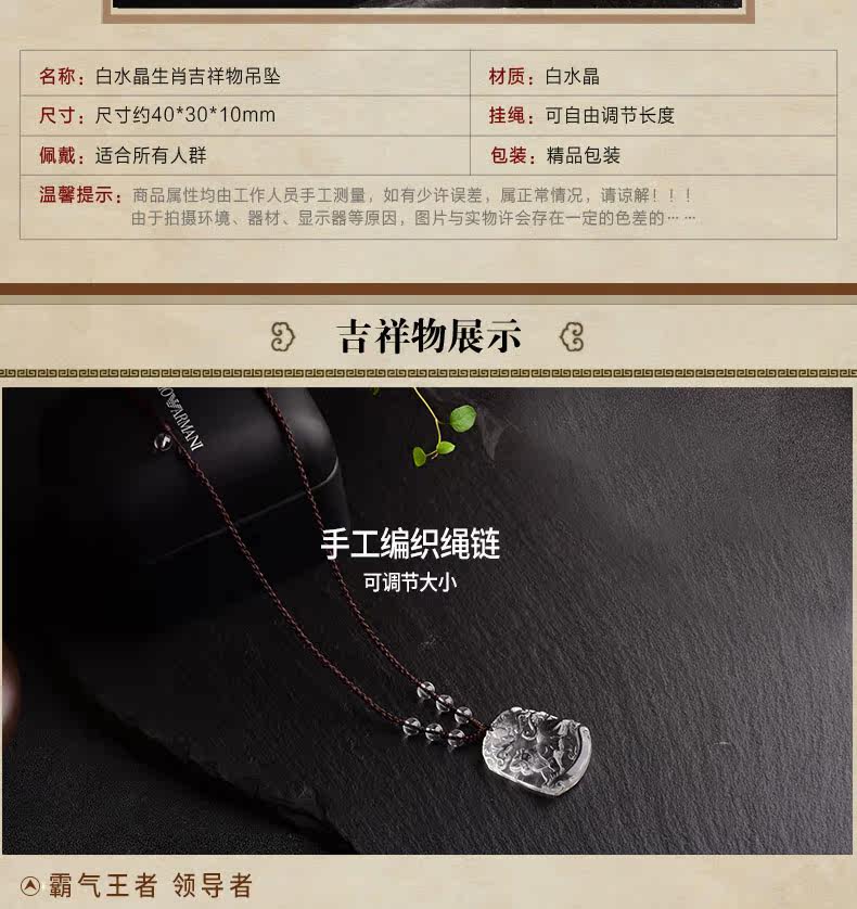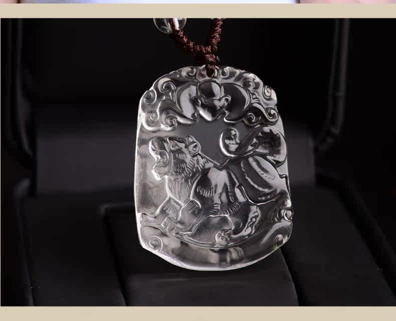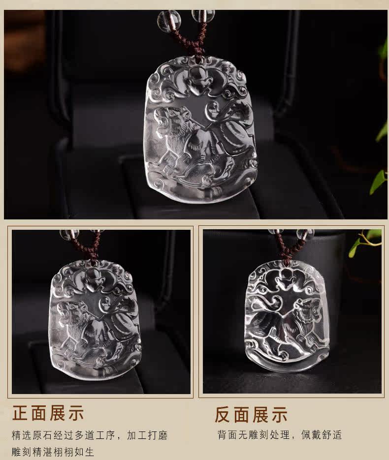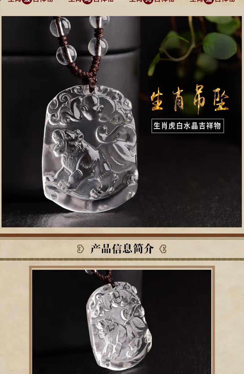 开光天然白水晶十二生肖吊坠 属虎男女士款项链情侣挂件饰品礼物