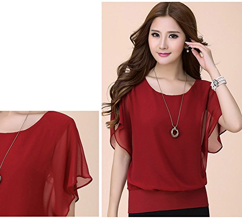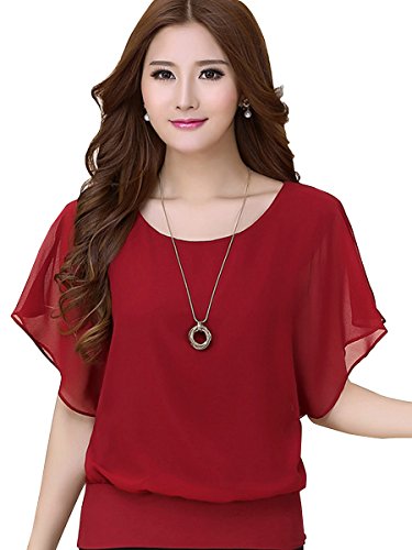 -. Title : (バレント)Vlent 2016夏 レディース半袖シフォンシャツ ブラウス トップス バットウィング プラスサイズ カジュアル (M, 赤)