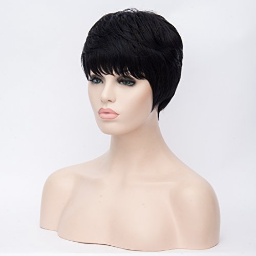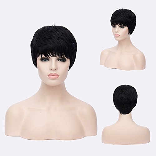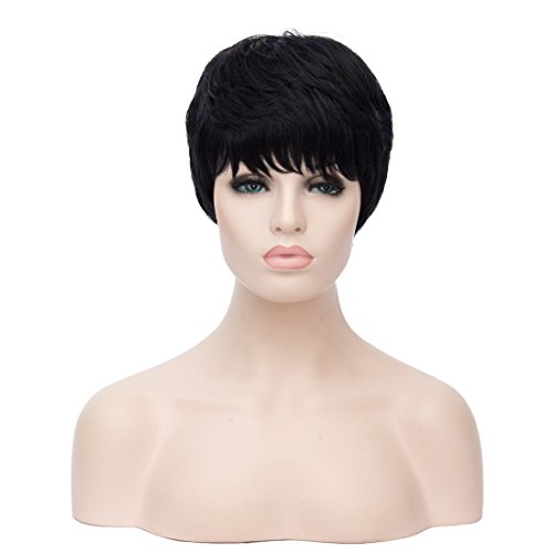 Title : 26CM 10" Women's Short Curly Wave Full Hair Wigs with Irregularity Bangs for Daily Use (Black Blue)