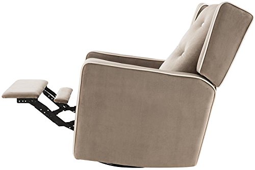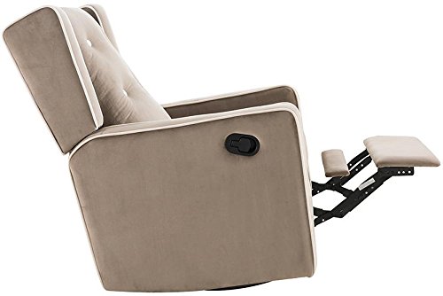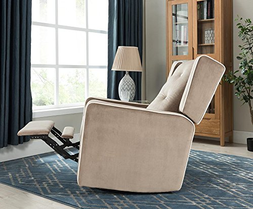 Studio : Naomi Home Publisher : Naomi Home Product Description Sit Back and Relax! Add a touch of style and classic charm with the Naomi Home Odelia Button Tufted Swivel Glider Recliner. This chair features a square silhouette with a track arm design, plush and soft high quality fabric makes it a smooth feel, button-tufting on the back rest, and elegant edge welt detail trim accent.?The Naomi Home Odelia Glider features both a rotating swivel function and smooth gliding motion. The enclosed ball bearing mechanism allows for both a rotating swivel function and a smooth gliding motion, giving you a full range of movement and convenience. For even more comfort, a built-in easy-pull mechanism is within reach to prop up your legs on the leg rest or to fully recline the unit. It also boasts a sturdy construction for years of quality use that your entire family will enjoy. Create a peaceful retreat to tend to baby and enjoy quiet moments in the comfort of The Naomi Home Odelia Button Tufted Swivel Glider. The convenient lever placement puts you in complete control over the chair's movement. This recliner is the perfect place for feeding, snuggling, or just plain relaxing! 0