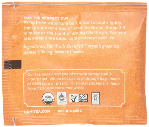 Jasmine tea is the oldest known scented tea, and Numi’s begins its life in the gardens of Hunan Province, China. The rich soil and fluctuations in daily temperature in this region yield a fragrant leaf, over which organic jasmine flowers are laid until their scent is absorbed by the tea. Scented three times, this smooth green tea has layers of subtle fragrance and hints of moonlight. Numi’s Jasmine Green tea is sourced from the first Fair Trade gardens in China, where workers’ wages have increased 30-40% and premiums recently funded a school dormitory for children. About Numi: Numi is a labor of love by a brother and sister. She is the artist and he is the alchemist behind all of Numi’s blends. Their exceptional-tasting teas are captured in unique blends that use the highest quality organic, non-GMO ingredients sourced directly from fair labor gardens. Numi combines premium full-leaf quality teas and herbs with only 100% real fruits, flowers and spices. About Numi: Numi is a labor of love by a brother and sister. She is the artist and he is the alchemist behind all of Numi’s blends. Their exceptional-tasting teas are captured in unique blends that use the highest quality organic, non-GMO ingredients sourced directly from Fair Trade Certified gardens. Numi combines premium full-leaf quality teas and herbs with only 100% real fruits, flowers and spices. “Through authenticity, creativity, and commitment to people and planet, Numi brings you the purest, best tasting organic tea”Feature
