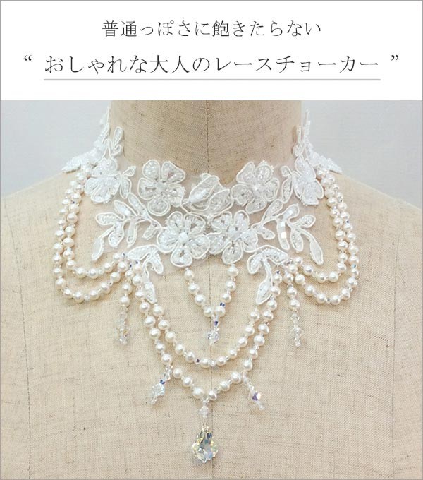 気品漂うアクセサリーはゲストを引きつけてくれます! 普通っぽさに飽き足らない、おしゃれな大人のレース・チョーカーです。