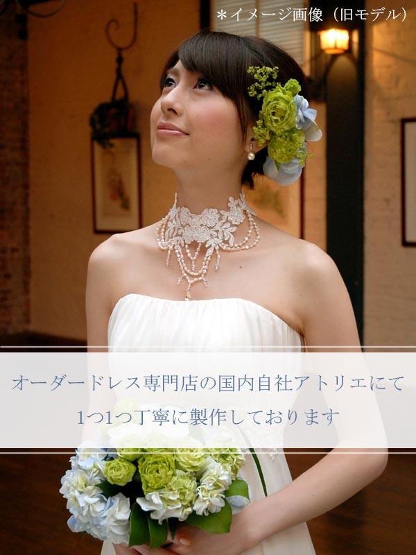 オーダードレス専門店の国内自社アトリエにて1つ1つ丁寧に製作しております。 また、こちらのネックレスは、ヴィーヴラマリエ!青山店で取り扱っております。 |