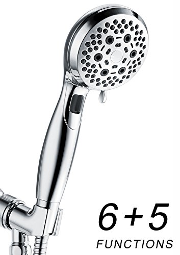 PREMIUM QUALITY AND 11 SPRAY SETTINGS: Wide Full Coverage and Anti-Leak modern Design. Lasting Finish Resists corrosion & wear. Can be used as Overhead or Handheld shower. Ergonomic Grip Handle. One finger control Multi-Power Dial. EcoSwitch Button reduce water flow and save. 11 sprays: power spray, power massage, power spray+massage, Power Aerated, Power spray+ Aerated, Water saving trickle( save water and keep your shower warm while you shave or shampoo) and 5 Ecoswitch sprays
