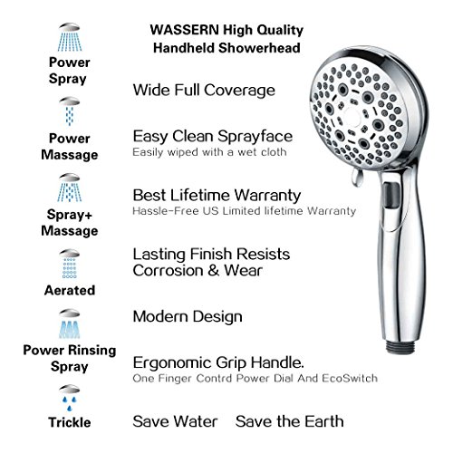 SAVING WATER SAVING MONEY: Saving $130/year or 40% water with our New Aerated Spray, Ecoswitch sprays and water saving trickle dial.The Wassern Showerhead will pay for itself in less than 3 month. INSTALL in minutes on any standard shower arm. Easy Tool-Free connection.