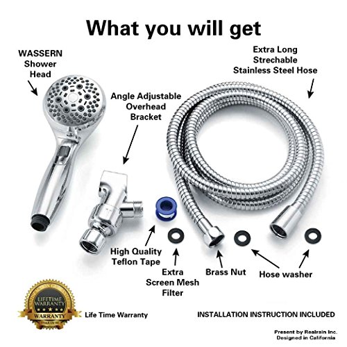 WHAT YOU GET: stunning gift box, Handheld Shower • Shower Hose • Overhead Bracket • Free Teflon Tape, Additional Water Filter • flow restrictor that is easy to install and remove. Installation Manual and Warranty. BEST LIFETIME WARRANTY: Hassle-Free US Limited Lifetime Warranty with LIVE customer service representatives in US.