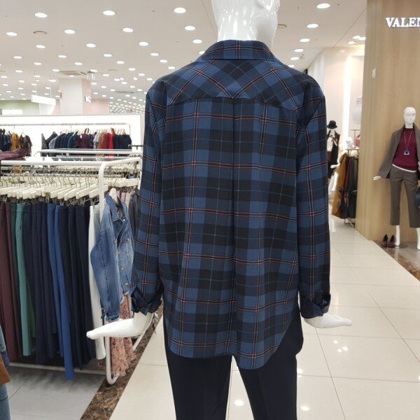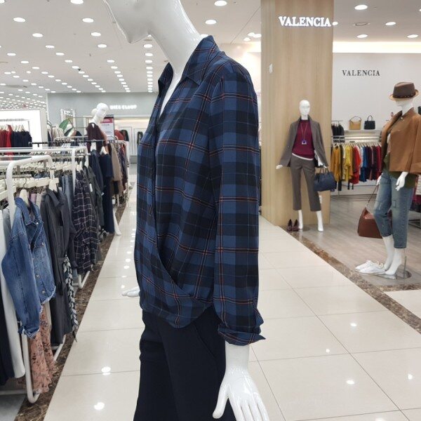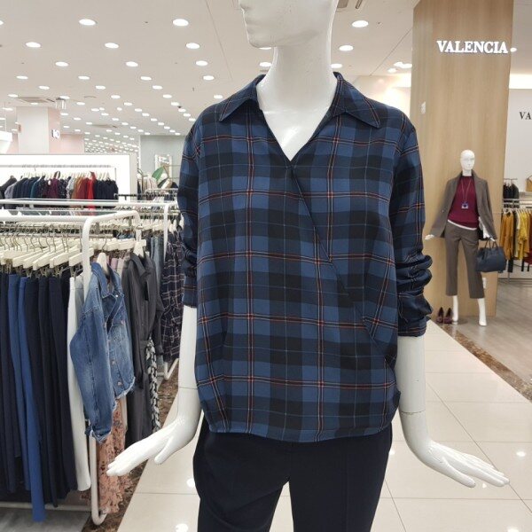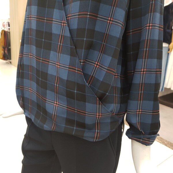 사선 카라 체크 블라우스