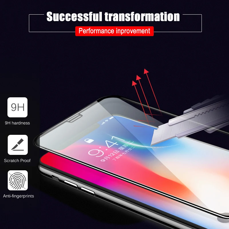 for iphone 7 screen protector glass film:9H Hardness Plating Edge For Iphone x 8 plus