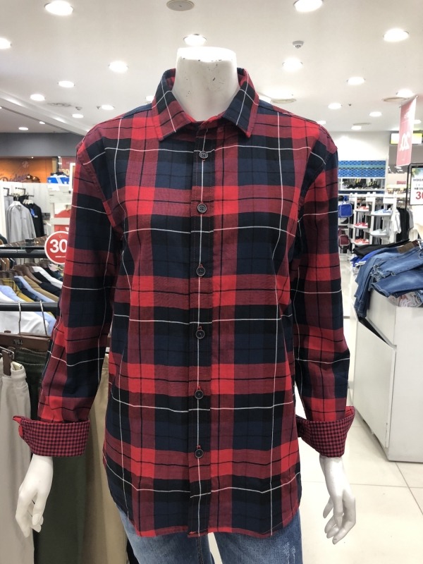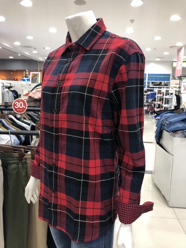 유니) 이중지 체크 셔츠