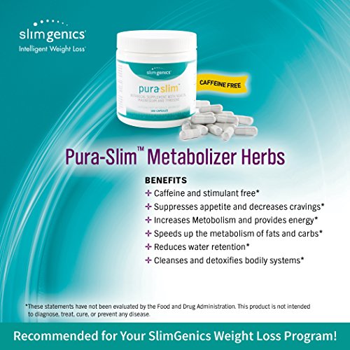 The blend of herbs found in Pura-SlimTM Metabolizer Herbs help to enhance your metabolism, increase your energy, reduce water retention and detoxify your body. They also help to support liver and kidney function as well as your cardiac and immune system during the stress of weight loss. Pura-SlimTM Metabolizer Herbs are stimulant free and help address many of the barriers of losing weight. Pura-Slim is recommended for caffeine sensitive clients.*Feature