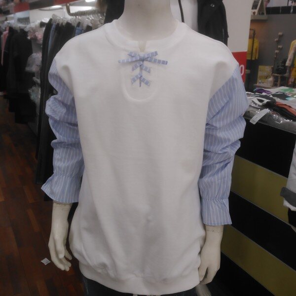 블라우스 소매가 매력인 맨투맨 티셔츠입니다.봄날의 스키니진과 초여름의 반바지에도 잘 어울리는 티셔츠.