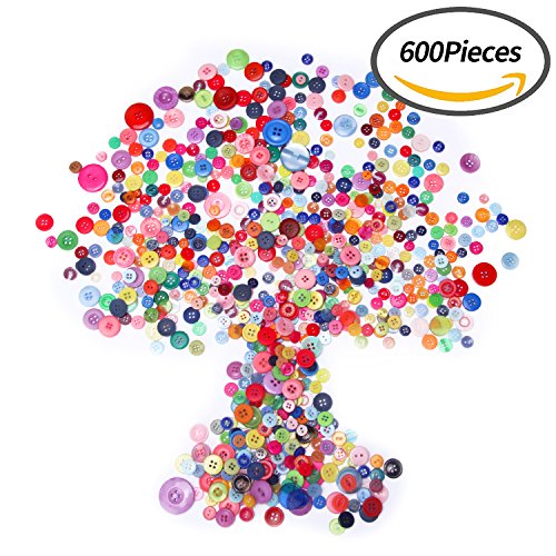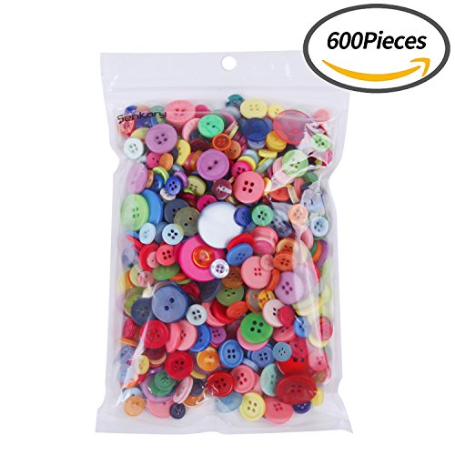 Senkary 600 Pieces Craft Buttons Decorative Sewing Buttons Assorted Buttons Resin Round Buttons Bulk 4 Holes and 2 Holes, Assorted Colors and Sizes