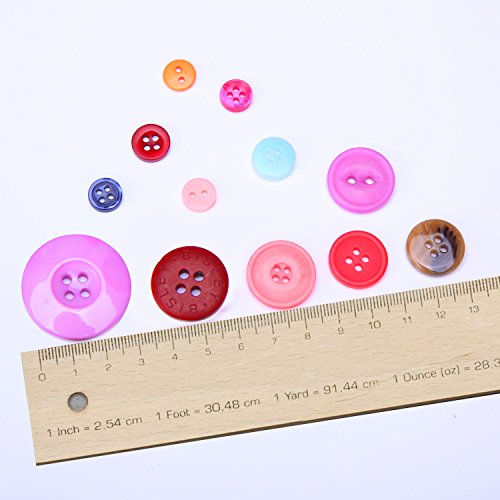 - Assorted sizes resin buttons: these 4 holes and 2 holes buttons diameter vary from 0.7 cm/ 0.28 inch to 2.8 cm/ 1.1 inch