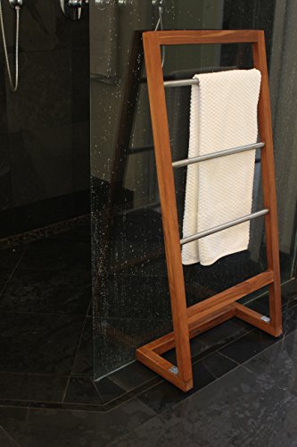 THE ORIGINAL SULA ANGLED TEAK & STAINLESS TOWEL STAND