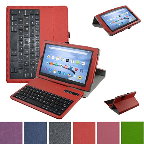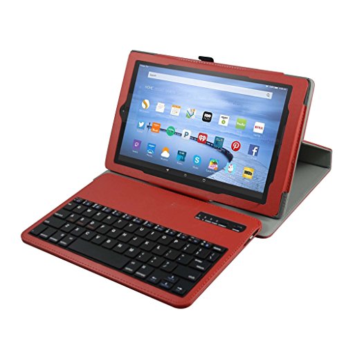 Fire HD 8 6th Generation 2016 Bluetooth Keyboard Case,Mama Mouth Slim Stand PU Leather Cover With Romovable Bluetooth Keyboard For 8" All-New Amazon Fire HD 8 6th Generation 2016 Tablet,Red