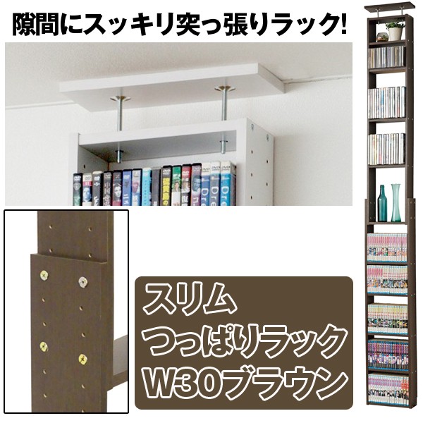 超薄型!超ロング!!天井まで有効利用のスリムつっぱり収納ラック!! 省スペースでもきれいに整理収納! 整理収納アドバイザー監修商品。 奥行11.5cmの薄型なので、廊下、洗面所、台所などの狭い場所や、扉の後ろに隠れるようにも設置できます。棚板は、縦にも設置でき、飾り棚のようにフックを使えば物を掛けたりもできます。コミック本・CD・DVD・洗剤・フィギュアetc、、、等使い方はあなた次第!!■商品サイズ:W30×D11.5×H(最大)248.5cm