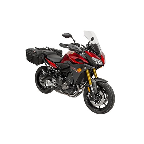 Made of heavy-duty, 1,680-denier polyester, the Fastrax Saddlebag Set has a universal design that fits a wide variety of motorcycle styles. Waterproof and lockable zippers and attached, sewn-in rain hoods keep out moisture, while rubberized bottom layers help prevent your bike from getting scratched. Other features of the bag include adjustable heat shields and a storage area and port for an MP3 player.