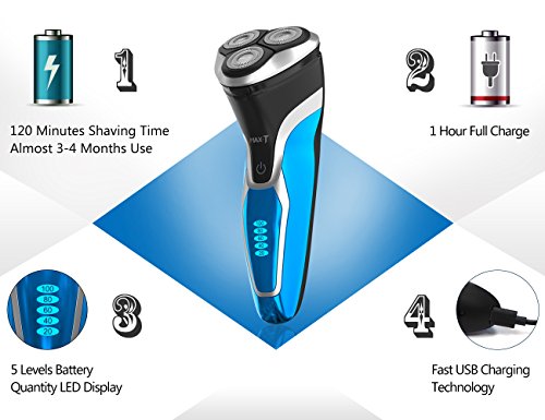 Quick Charge & Long Use Time - 1 minute fast USB charging technology support the electric shaver operating again. 1 hour full charge for almost 2 months use (120 minutes shaving time).