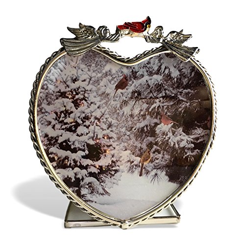 [Product Information]- CHRISTMAS TREES AND CARDINALS. This is a beautiful glass candle holder with a snowy winter scene printed on the glass. The antiqued metal heart outline has 2 flying angel charms holding a red enameled cardinal charm. Great addition to all you winter decor.
