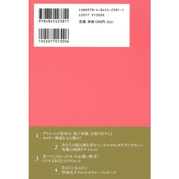 【商品説明】 定価(税込み):1,404円 値引き:10% OFF お肉も油もあなたの味方! 楽しく食べれば痩せられる。 良質な油で美しくやせる! あなたが我慢しているお肉、実はダイエットの味方です。ダイエット中なら鶏肉ってほんと?ヘルシーなイメージのベーグルよりクロワッサン。 「やせない」と悩む人たちに3食ともお米を食べている人がいないのはなぜ?伊達式レシピ付き! ! バーゲンブック 新品 特価 格安 ビューティー&ヘルス ダイエット ビューティー ヘルス レシピ | |