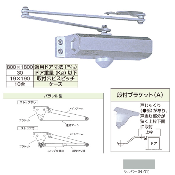 ●仕様:パラレル型・ストップなし・ドア重量30kgまで・段付ブラケット