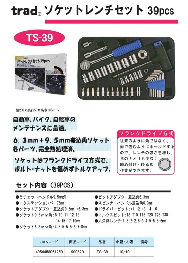 【商品名】(業務用2個セット) TRAD ソケットレンチセット/作業工具 【39個入り】 フランクドライブ方式 TS39