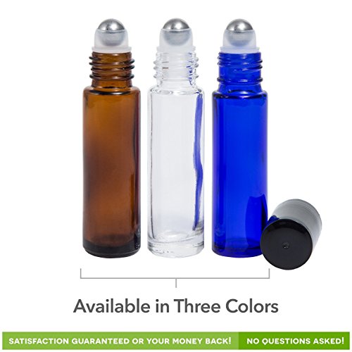 6 Solid glass roller bottles with plastic roller balls. Roller all roll evenly and are not stuck in place like competitors products.