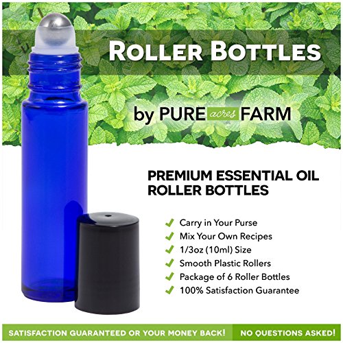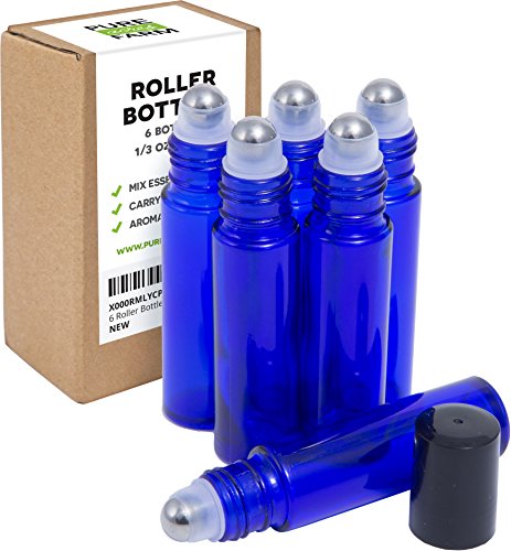 Pure Essential Oils Roller Bottles with Recipe eBook, 6-Pack, Cobalt Blue