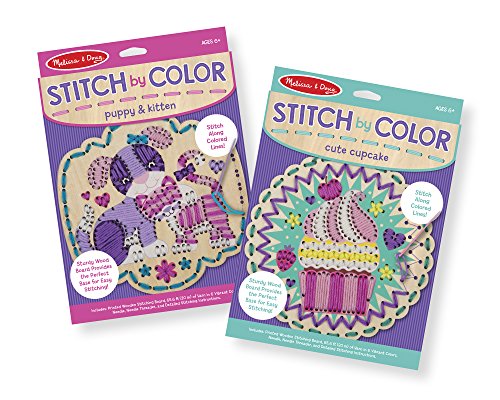 Basic stitching is fun and easy to learn with Stitch by Color! Stitch along colored lines on the easy-to-hold sturdy wooden board to create an adorable puppy and kitten scene or a cupcake scene with an embroidered look. Threading the kid-friendly needle with the more than 78 feet of colorful yarn is a breeze with the included needle threader. Step-by-step instructions make it simple for kids six and older to master two types of stitches.Feature